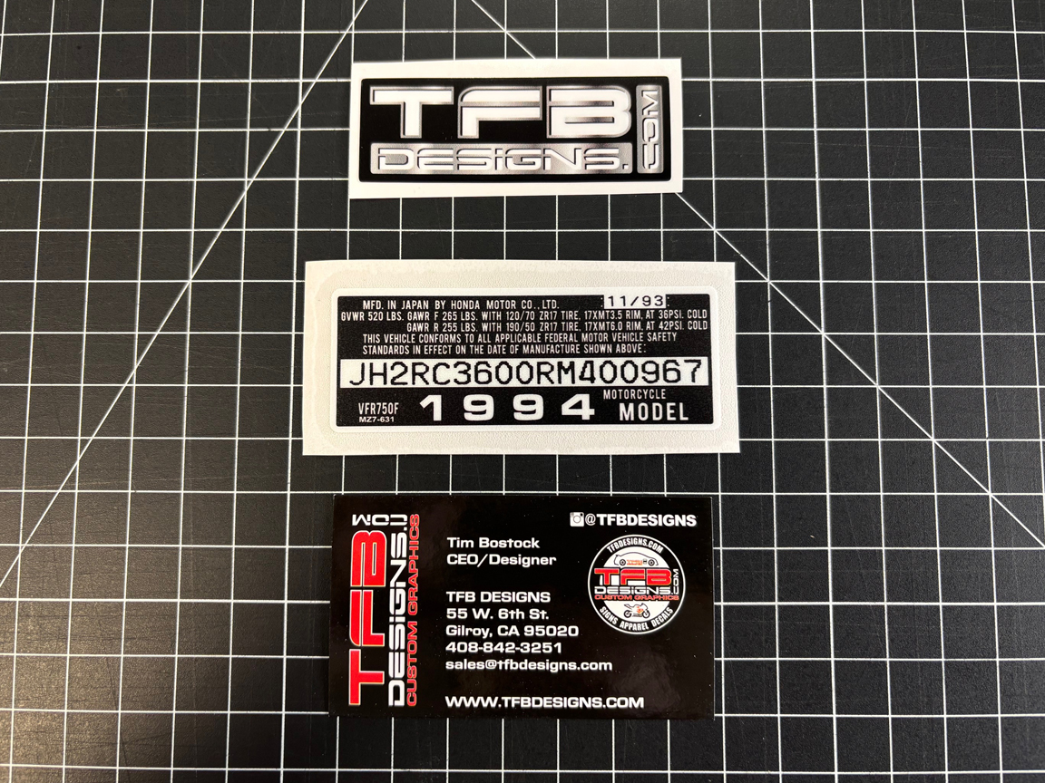 This is a replacement VIN Number decal for the 2000-2001 Honda CBR929RR. You will receive this decal custom made with the VIN number from your CBR929RR. This decal is an exact replica of the factory VIN number decal. Our decal also has a layer of clear vinyl over the top to protect the decal making it superior to the original. If you are painting your frame or doing a restoration this decal is for you! Please type in your full VIN number, the production year / month, and the model year when ordering.